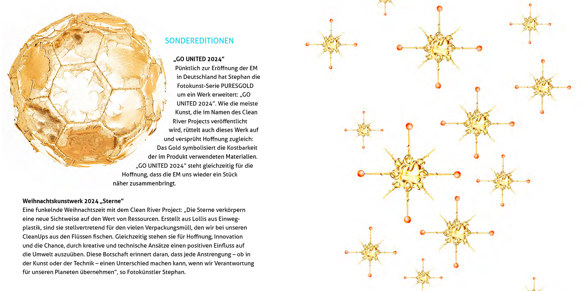 Die funkelnden Sterne wurden aus Lollis aus Einwegplastik gefertigt – stellvertretend für den Verpackungsmüll, den wir bei unseren CleanUps regelmäßig aus Flüssen bergen.